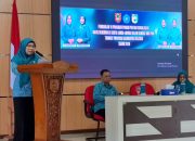 Kepala Kejaksaan Negeri Tanah Laut Teguh Imanto SH. M.Hum didampingi Kasi Intelijen Radityo Wisnu Aji SH MH dan Kasi Pidsus Akhmad Rifani SH MH melalui konferensi pers di aula balai diklat hutan kota.