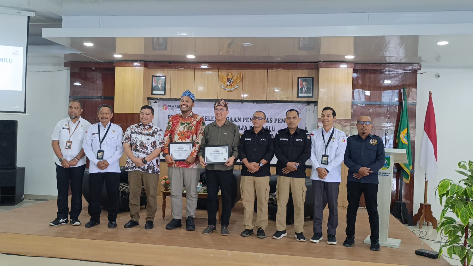 Sebagai bentuk apresiasi, Bawaslu Tanah Laut di akhir acara menyerahkan piagam penghargaan dan kopiah Tuntung Pandang kepada para narasumber dan mitra kerja yang berkontribusi dalam kegiatan tersebut. (MN)