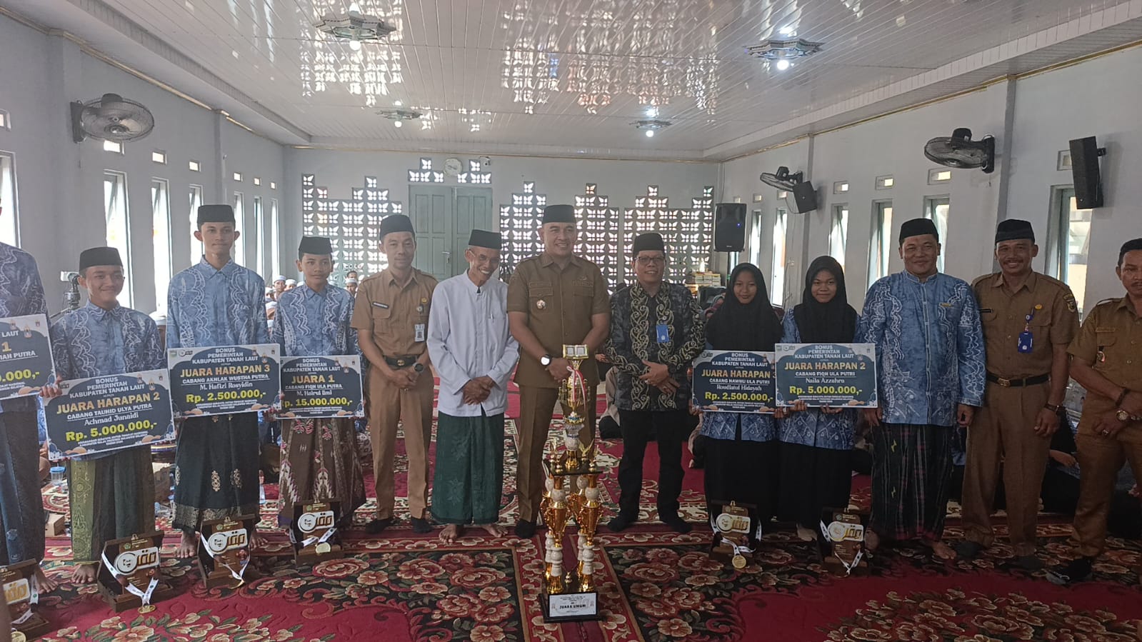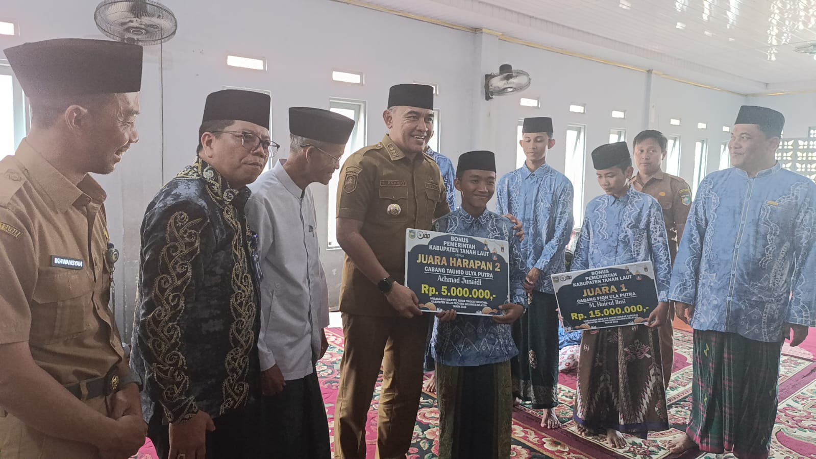 Dalam kesempatan itu, Bupati Rahmat turut menyerahkan bonus dan penghargaan khusus kepada para santri berprestasi di ajang MQK Internasional.