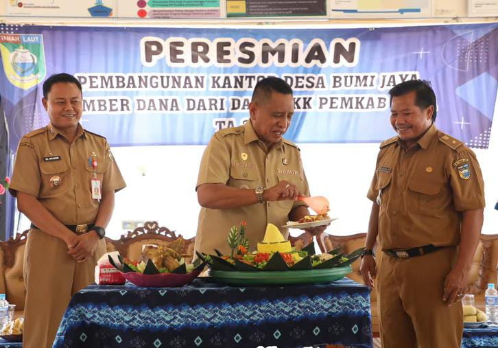 PELAIHARI, POSTKALIMANTAN.com – Desa Bumi Jaya, Kecamatan Pelaihari, yang dikenal sebagai salah satu desa percontohan di Kabupaten Tanah Laut (Tala), kini semakin menunjukkan kemajuannya. Pemerintah Kabupaten Tala resmi meresmikan kantor desa baru yang lebih modern dan representatif sebagai pusat pelayanan masyarakat, Selasa (4/11/2025).
