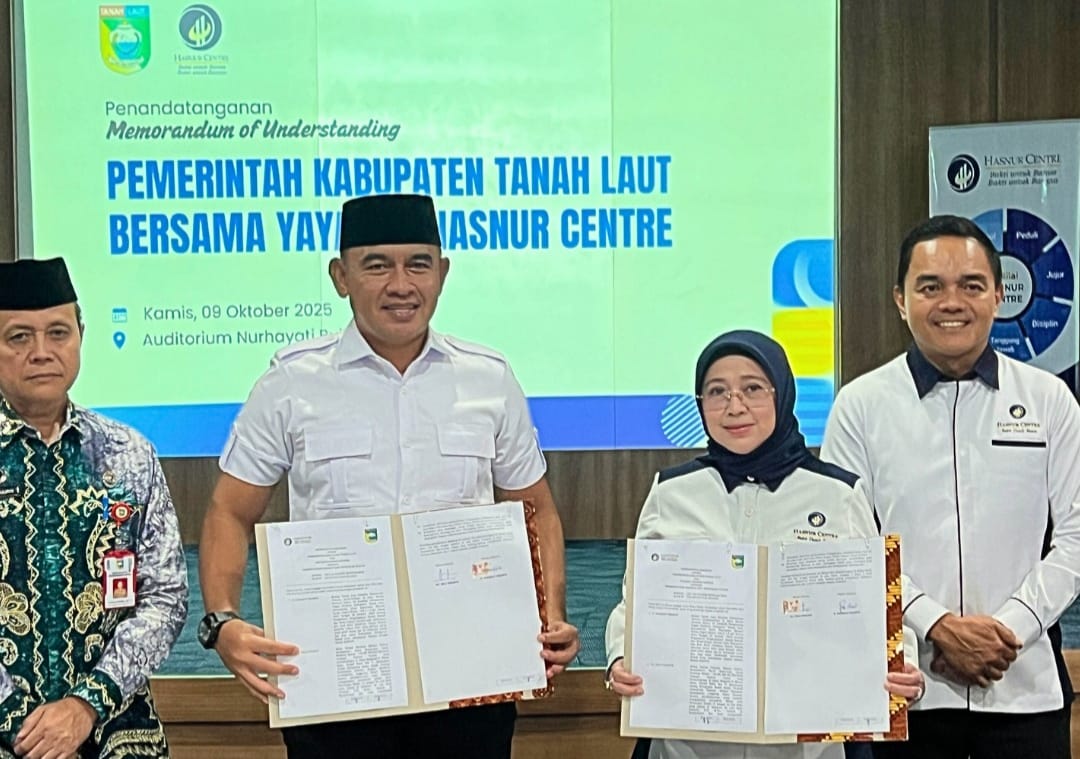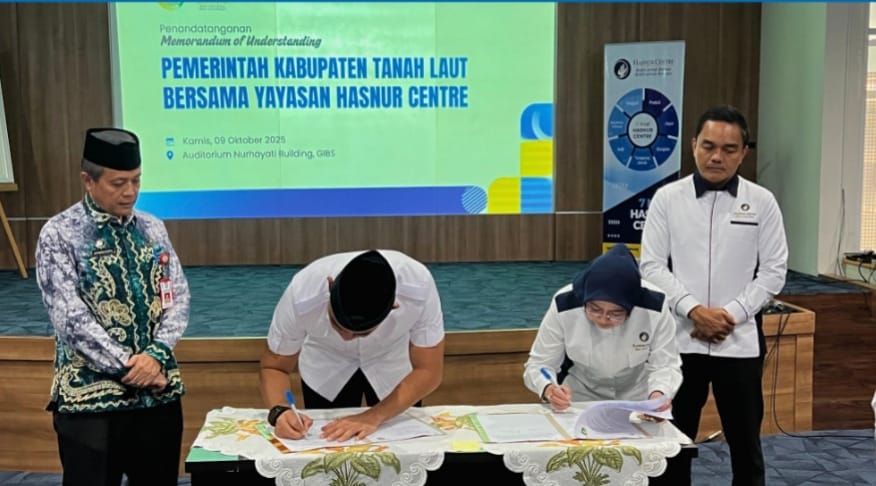 BARITO KUALA, POSTKALIMANTAN.com – Pemerintah Kabupaten Tanah Laut (Pemkab Tala) resmi menjalin kolaborasi strategis dengan Yayasan Hasnur Centre (YHC). Penandatanganan Memorandum of Understanding (MoU) dilakukan di Auditorium Nurhayati Building, GIBS Hasnur Centre, Alalak, Barito Kuala, Kamis (9/10/2025).