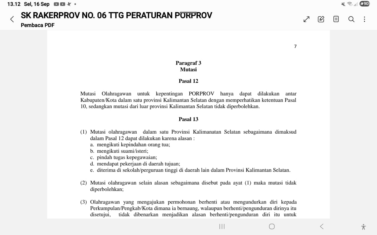 Sanggahan PSSI Tala mengacu pada SK RAKERPROV No. 06 tentang Peraturan Porprov, khususnya Pasal 12 dan 13, yang mengatur bahwa mutasi pemain hanya diperbolehkan antar-kabupaten/kota di dalam wilayah Kalimantan Selatan.