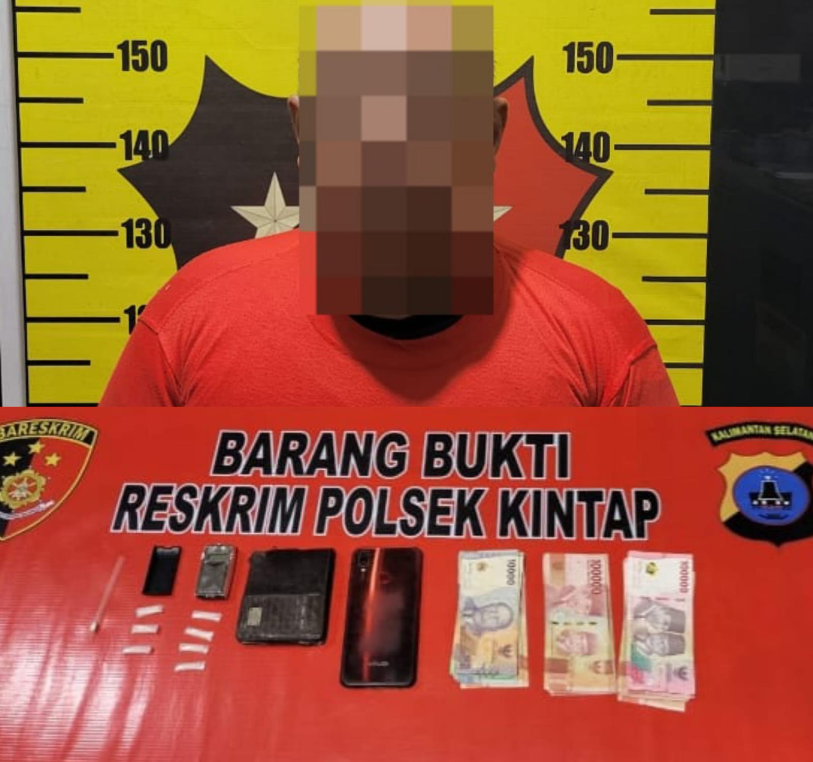 Pelaku diketahui bernama Rahmadi alias Jalal (44), warga Desa Kintapura, Kecamatan Kintap. Dari tangan tersangka, petugas menemukan tujuh paket sabu yang disembunyikan dalam bungkusan daun pisang kering. Total berat kotor barang bukti mencapai 2,30 gram dengan berat bersih 1,04 gram.