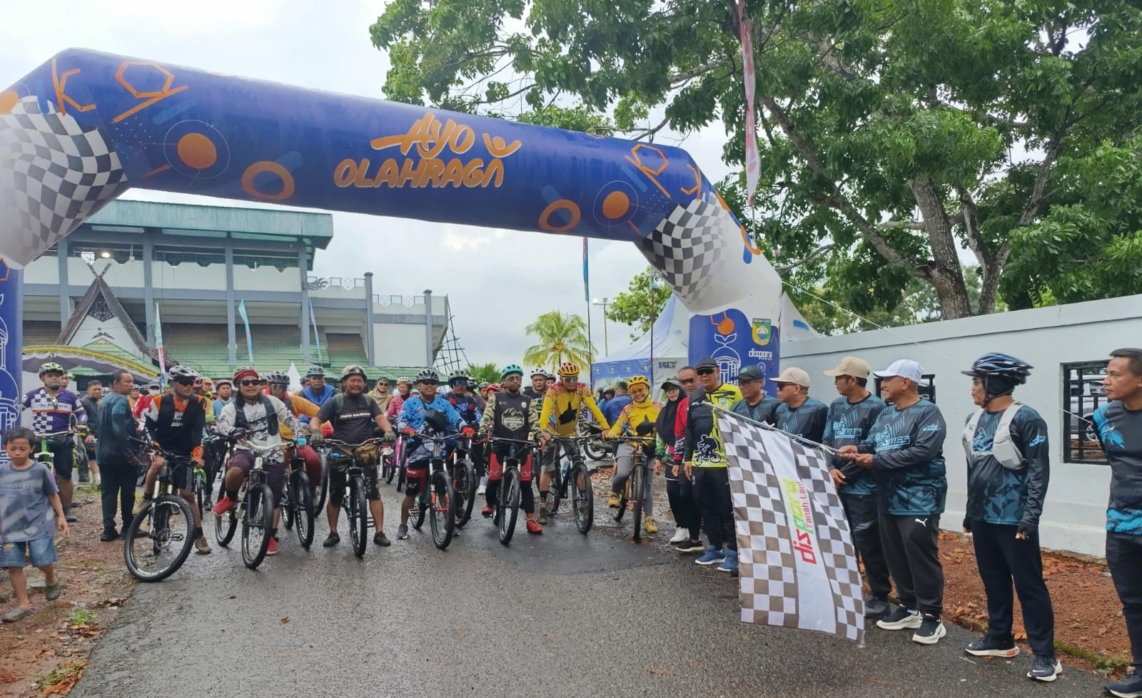 Wabup Tanah Laut Lepas Ratusan Peserta Gowes Haornas ke-42, Jalan Licin Tambah Seru